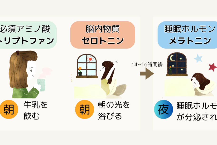 夜間乳には、トリプトファンというアミノ酸が豊富に含まれています。この成分はセロトニンやメラトニンの生成を促進し、質の高い睡眠をサポートします。質の良い睡眠は心身の健康を維持するために非常に重要であり、私たちの日常生活にも大きな影響を及ぼします。また、このような栄養素が豊富に含まれることで、不規則な睡眠パターンを改善する助けになると考えられています。